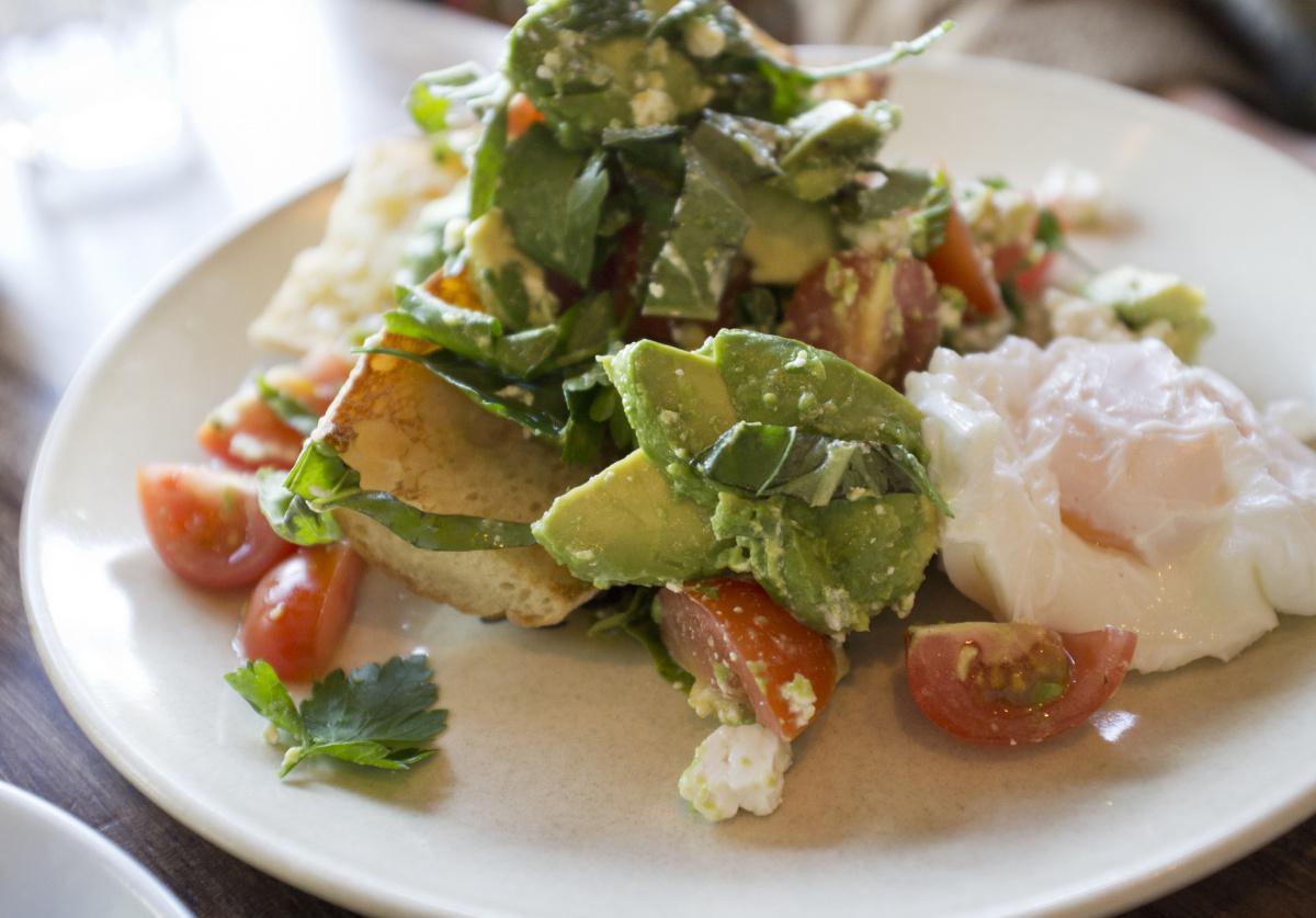 Mash the avocado with a fork and spread evenly on piece of toast. Top the avocado toast with spinach, scrambled eggs, and tomato slices. Season with salt and pepper, to taste.