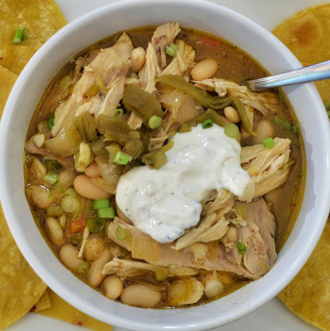 Add garlic, chilies, chicken, cumin, oregano, and hot pepper. Sauté for 2 minutes.