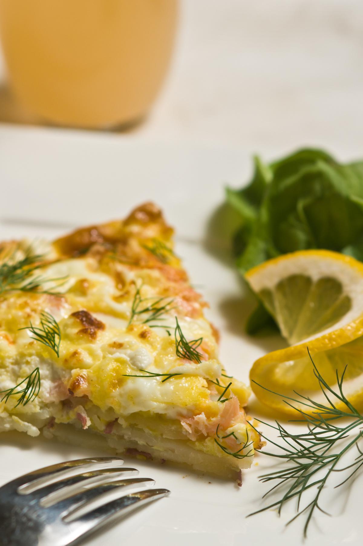 1. Combine eggs, milk, cheese, salmon, green onion, and any seasonings in a bowl; set